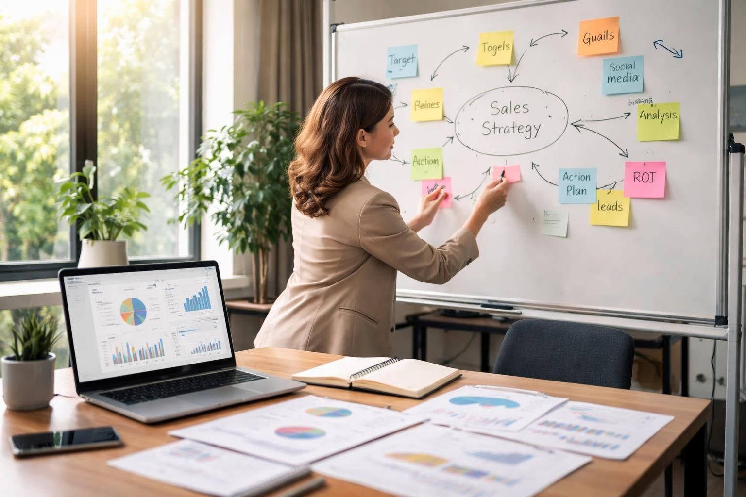 - Stratégies de vente : Définir différentes approches pour atteindre les clients potentiels, y compris les canaux numériques et physiques.